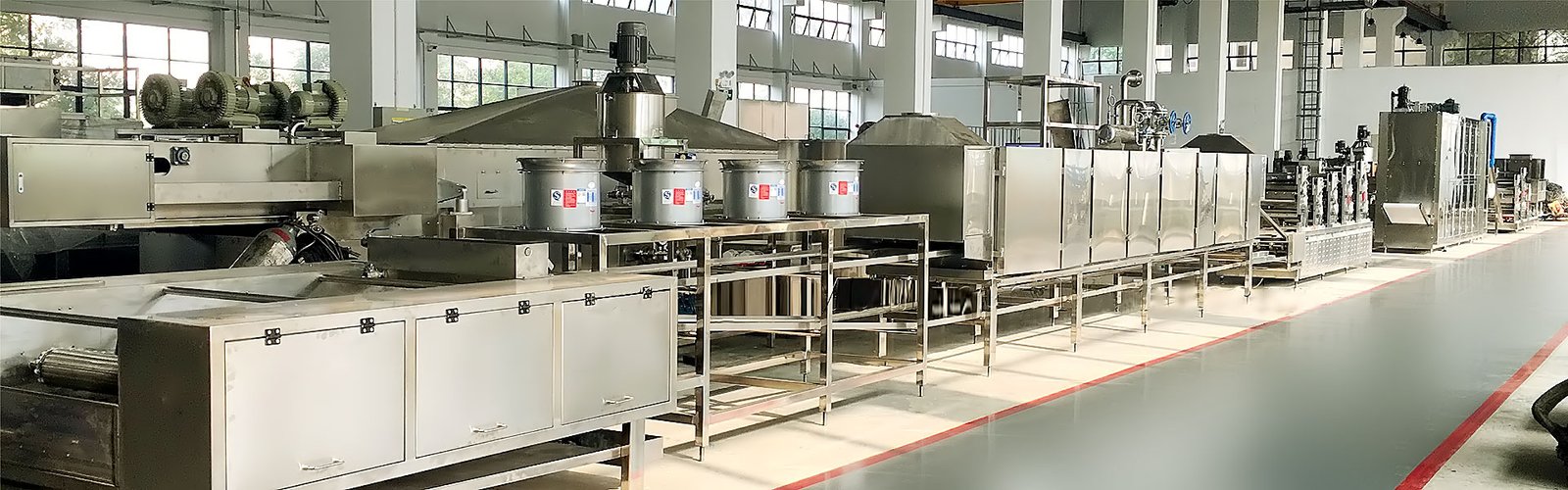 Two twin screw extruders - capacity to produce 90 tons per month. It is capable of producing all types of ready to eat extruded snacks at different shapes and with advanced PLC control to produce the desired product with crunchiness. By using the same extruder it is possible to produce co-extruded products like center filled products etc.,